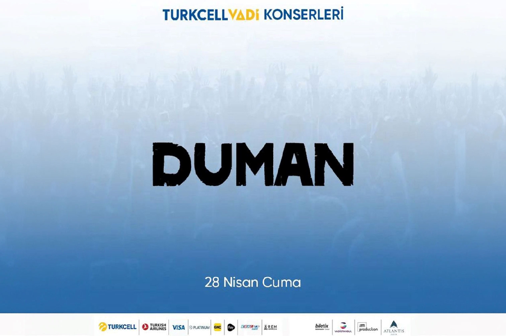 Nevi şahsına münhasır tarzıyla rock müziği herkese sevdirmeyi başaran Duman, 28 Nisan gecesi SM Production imzasıyla Turkcell Vadi sahnesinde binlerce hayranına unutamayacakları bir performans sergiledi. Binlerce Duman hayranı, grubun dillere pelesenk olan şarkılarına gece boyunca eşlik etti. Atlantis yapım organizasyonunda olan gece alkış yağmuruyla son buldu.